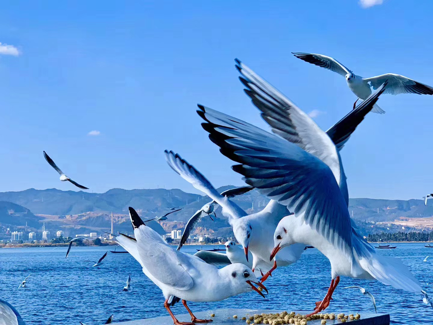 昆明滇池春光無限 海鷗群飛 滇池環境保護初見成效 昆明滇池會展中心成新寵