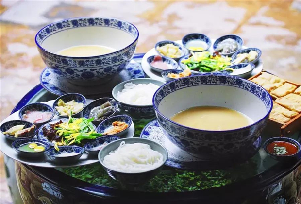 “食品中的尤物”,昆明文青鼻祖,汪曾祺先生曾這樣評價云南的過橋米線。依據傳統熬制8小時以上的湯底,滾熱中香氣撲鼻,把鵪鶉蛋、火腿片、里脊肉、烏魚片、香酥、草芽和豌豆尖等等豐富的精選食材按次序燙熟,簡直像是完成一種喚醒食欲的儀式——這是最具盛名的云南菜之一。吃之前喝一口湯,“呲溜”一口米線,味覺層次豐富,鮮美卻不燥舌,怎么會不討人口腹歡喜呢?