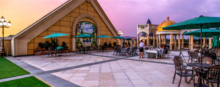 總建筑面積45000㎡。華美浮雕,重彩油畫, 絨布地毯在璀璨的水晶吊燈映襯下,營造出古歐中世紀特 有的古堡風情。