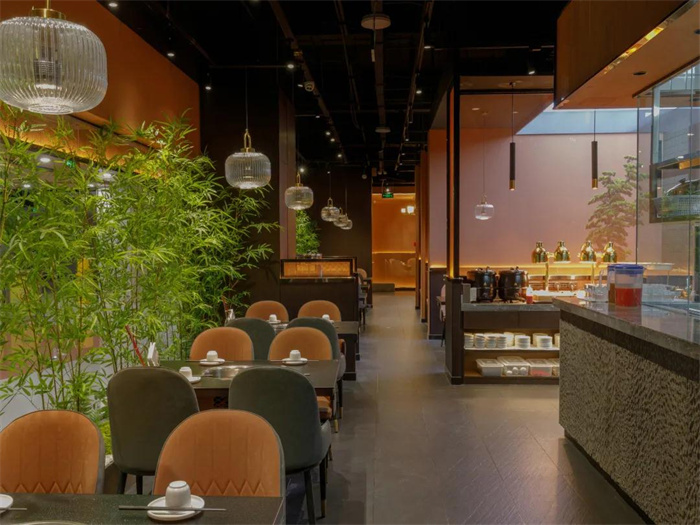 將竹子、蓮、古建筑等作為元素,以現代的表現手法表達古韻之美;在合理的動線分布中讓服務人可以及時響應顧客的需求。在這里品用素食更像是人們在現代都市生活中身心得以釋然的自然狀態,一種回歸本真的輕盈和閑適。