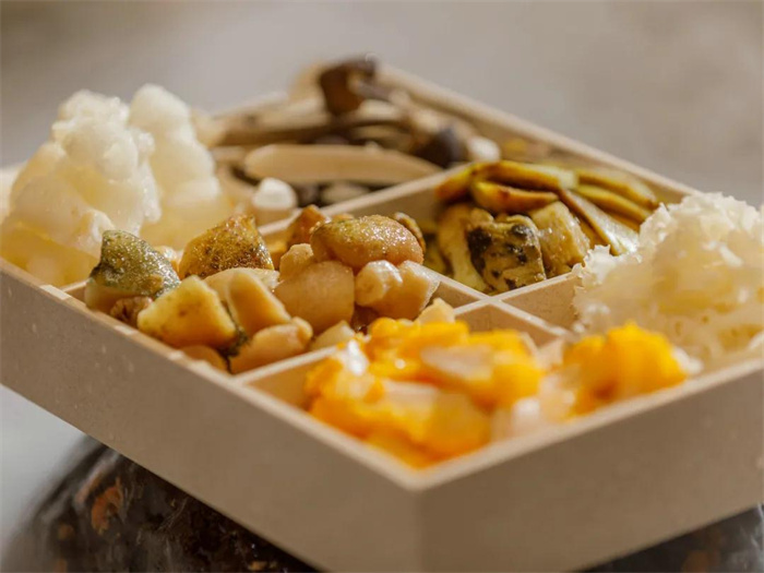 【七如意】主打本土菌菇火鍋,根據季節特供,六種野生菌拼盤,每月帶您領略不重樣的時令山菌。以菌菇、蔬菜、瓜果搭建的素食樂園,遵循著“不時不食”的古人智慧,跟隨著時令的腳步,帶著土地故事的食材相逢于此,以火鍋與素食料理的烹飪理念,演繹著自然風味。