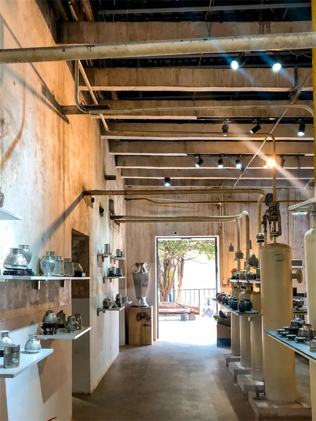 這里的金屬原料以錫為主,它們來自世界錫都——個舊,并且內部所有金屬制品皆由大師精心制而成。車間內的金屬制品很多,不同種類、不同樣式、不同工藝,應有盡有。可以說這里簡直就是一個金屬愛好者的天堂。