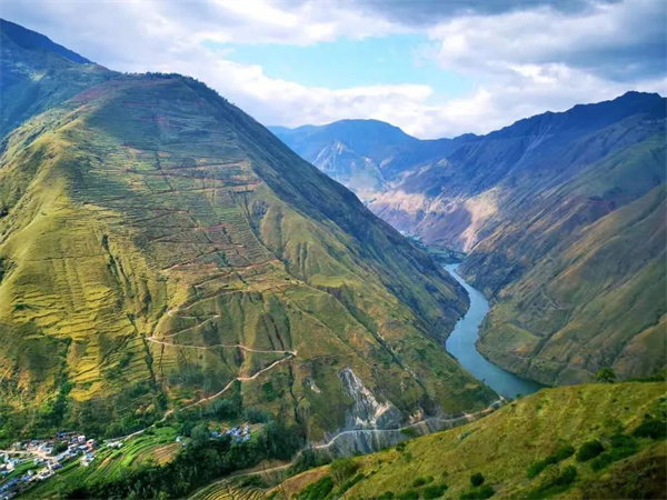 小編為大家提供昆明資訊,昆明旅行攻略,昆明美食,昆明酒店,昆明會展,昆明團建,昆明活動策劃等一切相關(guān)信息。從轎子雪山出發(fā),經(jīng)過烏蒙鄉(xiāng)到雪山鄉(xiāng)的這段掛壁公路可到達普渡河大峽谷。峽谷最高點雪嶺海拔4344米,最低點中梁子村海拔780米,3000多米的垂直落差集中在方圓14公里的范圍內(nèi),這個深切割的高山峽谷在徒步旅游界中被稱為云南的科羅拉多。行走在1800米高的懸崖絕壁之間,一邊感嘆大自然的磅礴大氣,一邊也著實讓人膽戰(zhàn)心驚。