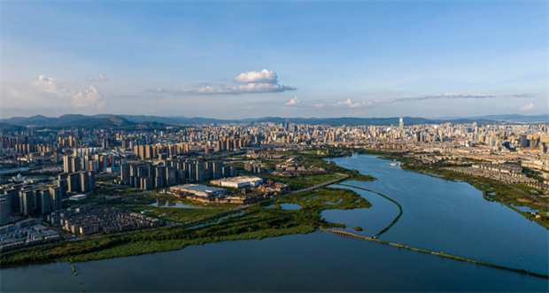 紫色海浪里——這條約10公里的綠道,是自然與人文交織的詩行。如詩如畫的水之橋,兩側有濕地、水杉以及紫水雞等,