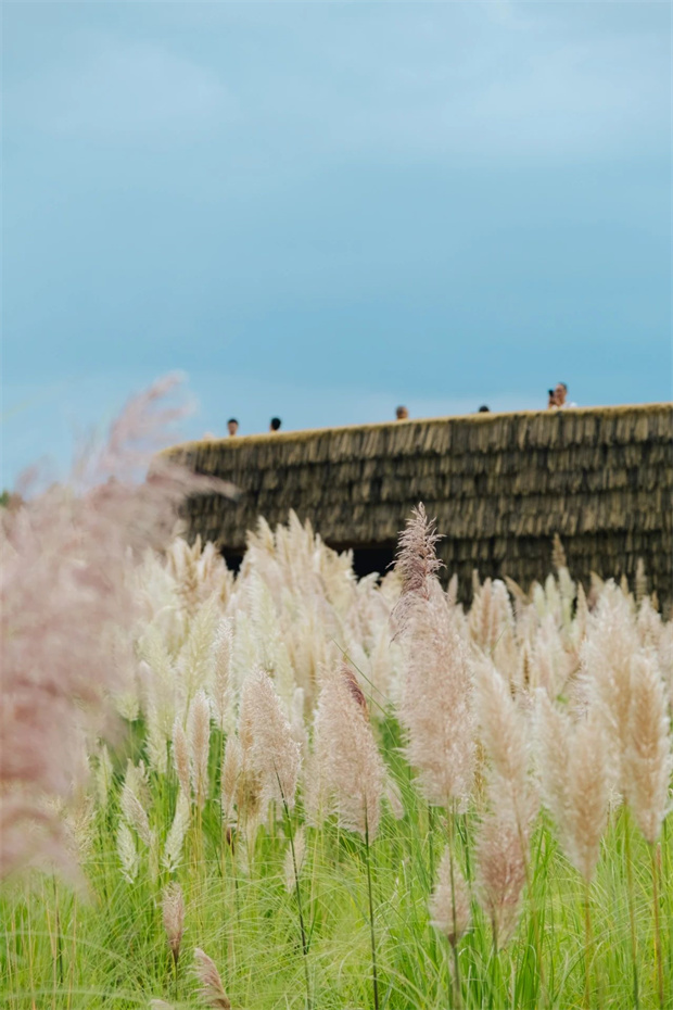 草之橋獨特的"鳥巢"觀景臺如同優雅的雕塑,懸在蒲葦海洋之上。蒲葦花序蓬松如絮,在風里搖曳著細碎的光,與觀景