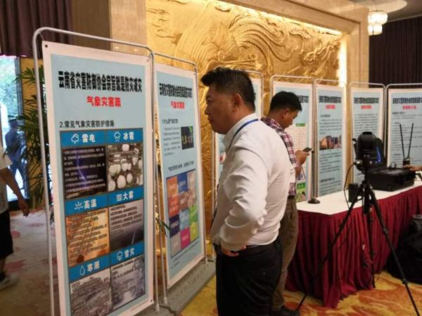 與會(huì)代表觀看災(zāi)協(xié)展示的防災(zāi)科普展板