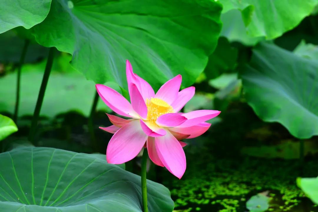 站在岸邊,放眼望去,入目皆是綠色。大片渾圓的荷葉一片接著一片,蓋滿了整個(gè)水面。