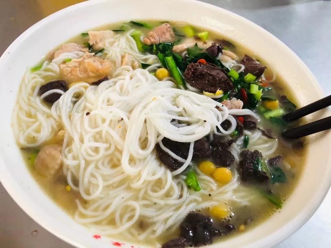 店內(nèi)面積不大,窗口狹小,但是永遠(yuǎn)不缺排隊(duì)的人。即使店內(nèi)大部分面積都被改成了餐廳,位置依然不夠。于是在染布巷內(nèi)總能看到這樣一幅奇觀:人行道上坐滿了,人們就著小板凳津津有味的吃著米線。