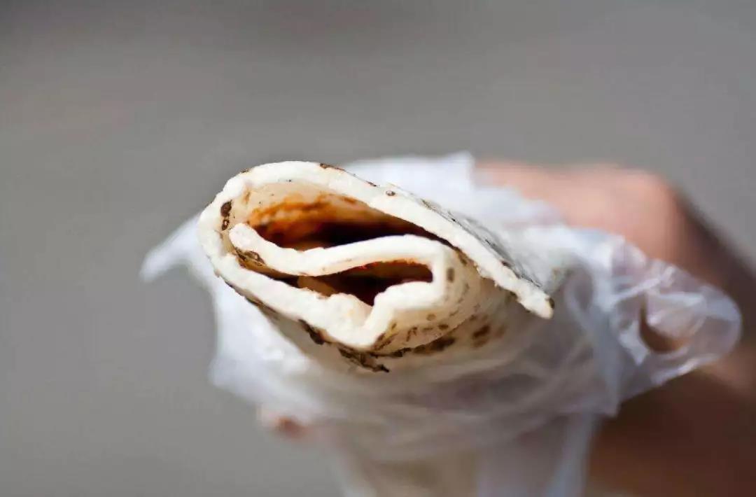 就醬料來說,有抹花生甜醬的,有抹咸味腐乳的,還有抹辣椒醬的;夾在餌塊里的配菜則更加豐富:土豆絲、酸菜、火腿腸、鹵牛肉……各種風(fēng)味薈萃其中,令舌尖快意不斷,真是變著花樣的好吃。