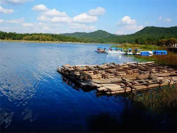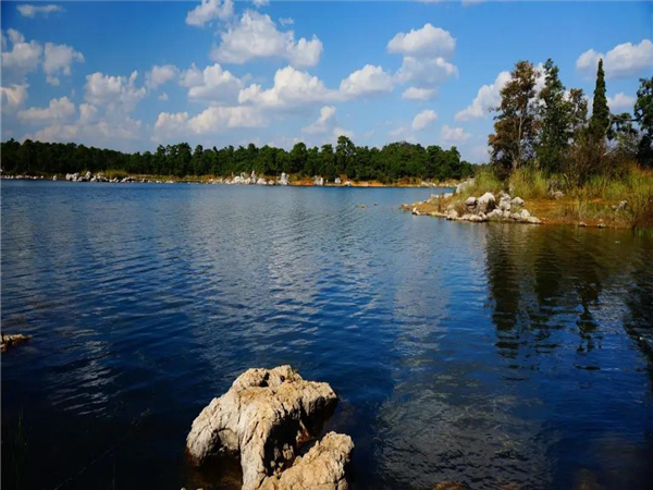不同于石林風景區(qū),石林長湖是真正山水相連的地方。這里湖水清澈平靜,魚兒眾多,空氣清新。岸邊青山綠樹倒映,讓人心曠神怡。