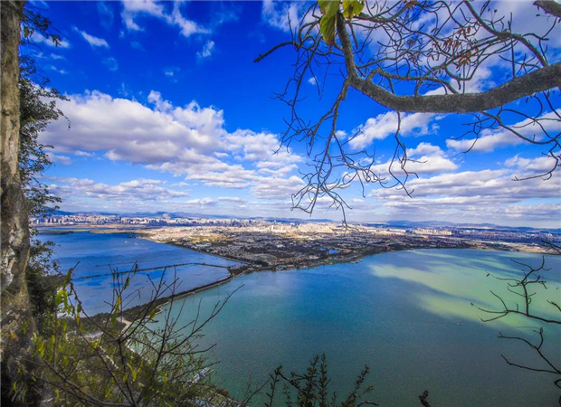 既然要觀賞滇池,第一首選地當(dāng)然是海埂公園。所謂“海埂”,就是指深入滇池中的一道長堤,把滇池分成了兩片湖泊,沿著堤壩到湖中游覽觀光,實在是美倫美煥、其樂無窮。