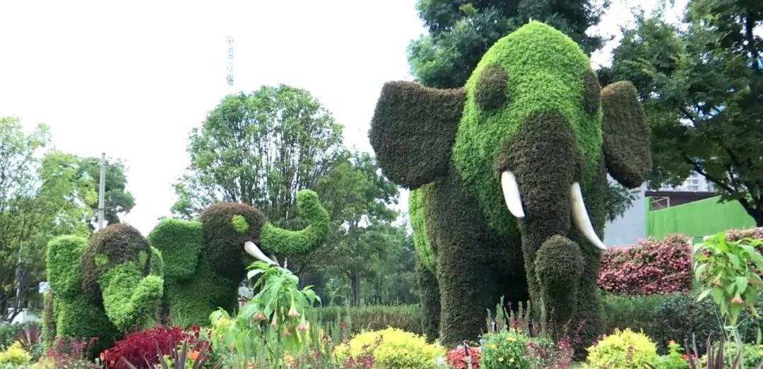接下來(lái),咱們?cè)偃キh(huán)湖東路與會(huì)展西路交叉口看看。這座花壇中間擺放了三頭代表“向往未來(lái) 勇往向前”的大象,一看就是咱們?cè)颇系摹氨就吝x手”。除此之外,這座花壇配備了100多種來(lái)自云南的花卉植物,也是本次大賽采用最多植物的參賽作品。