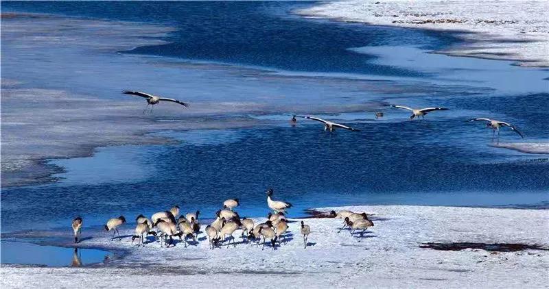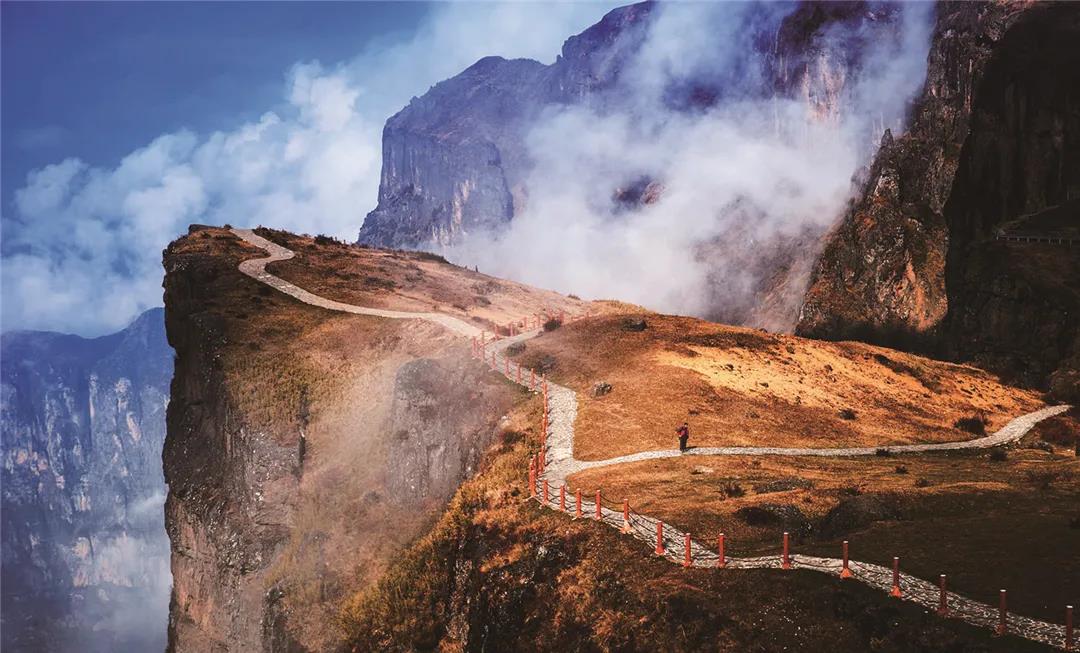 如若遇到陰雨天,大山包上就被濃濃的云霧籠罩,站在高處一眼看去,云海翻騰、云霧彌漫,如若運(yùn)氣好,還會遇到大山包的精靈——黑頸鶴,它們在云霧中行走、翱翔,如夢如幻,仿佛人間仙境。