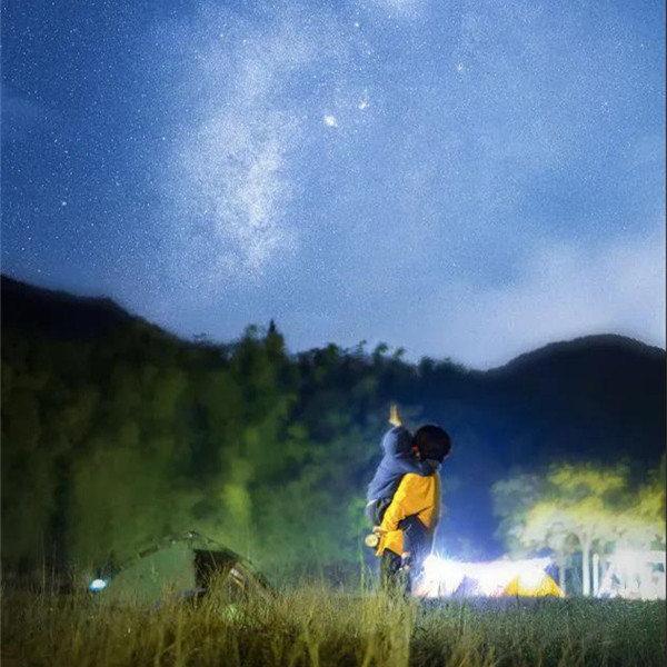 當夜幕降臨,湖面倒映著繁星滿天時,你可以看云朵、看月亮,也可以聽聽風吹草地的聲音。湖水拍岸的“嘩啦”聲與自然同頻,讓你的心也變得如此寧靜。