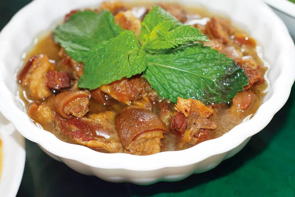 羊雜碎也有自己的吃法。蔥芫雜碎,是用黑山羊頭、蹄、內臟制作,原材料洗凈切小,入鍋漲沸,清水漂凈再入鍋燉煮,熟后盛入盤中, 放上蔥花、芫荽,湯色清亮鮮甜,不油膩。