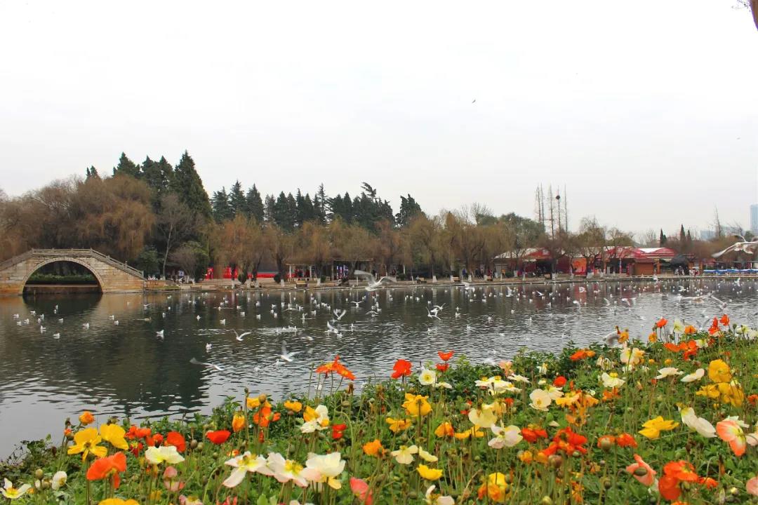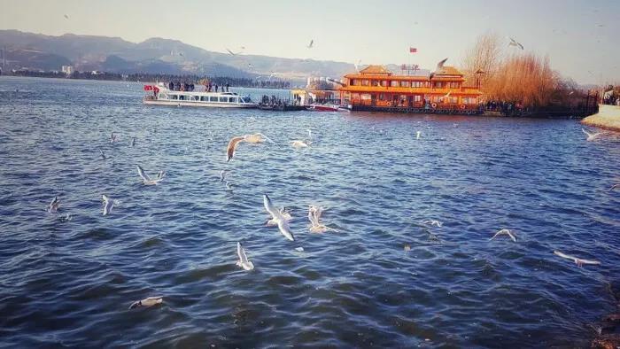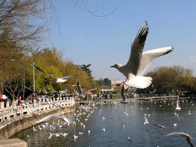 成群的海鷗就會從滇池飛來翠湖,