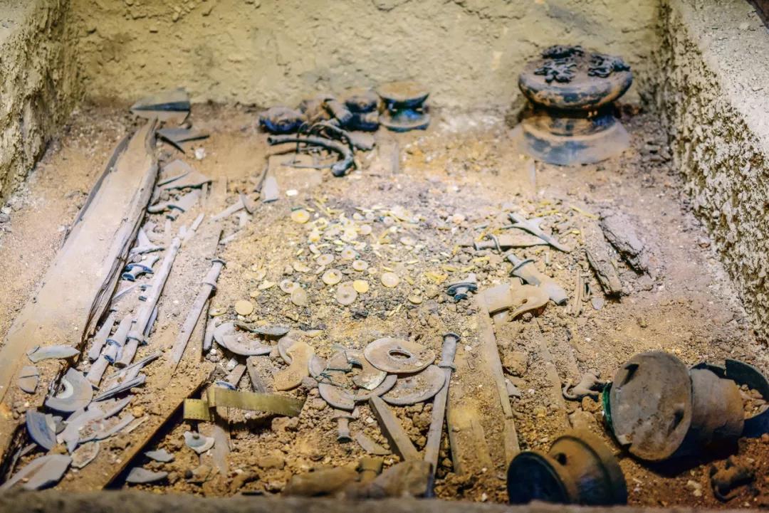 在楚雄青龍河畔的萬(wàn)家壩古墓群遺址約3000平方米的區(qū)域內(nèi)曾發(fā)現(xiàn)了79座古墓,皆為豎穴土坑墓,其中大墓13座。大墓分布在發(fā)掘區(qū)中部,小墓則分布在大墓兩側(cè),這種以大墓為中心,中小墓圍繞周圍的墓葬分布形式反映出原始氏族部落社會(huì)族葬制的特征。萬(wàn)家壩共出土了隨葬器物1245件,其中銅器1002件,其余有陶、木、玉石等。其中出土的銅鼓有5面,是迄今為止發(fā)掘出土的最古老的銅鼓,是銅鼓中最原始的形態(tài),年代上限可以推到春秋時(shí)期。萬(wàn)家壩古墓群遺址如今是楚雄的一個(gè)旅游景點(diǎn),除了一個(gè)銅鼓魂雕塑,遺址現(xiàn)場(chǎng)已無(wú)更多的古墓痕跡。然而作為春秋戰(zhàn)國(guó)時(shí)期的墓葬群遺址,這里還是吸引著不少游客。據(jù)當(dāng)?shù)厝苏f(shuō),遺址附近前不久新修了一個(gè)停車場(chǎng),與銅鼓魂雕塑一道,迎來(lái)送往。