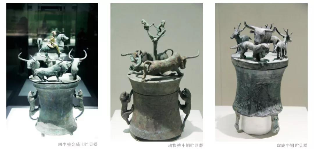 貯貝器是所有滇青銅器中最值得說(shuō)一說(shuō)的器具,每個(gè)貯貝器上都呈現(xiàn)出復(fù)雜多樣的裝飾場(chǎng)景。再加上器具背后暗藏的身份象征、商業(yè)發(fā)展等等內(nèi)容,使得這個(gè)古代的存錢罐意義非凡,成了云南青銅文化的典型代表。