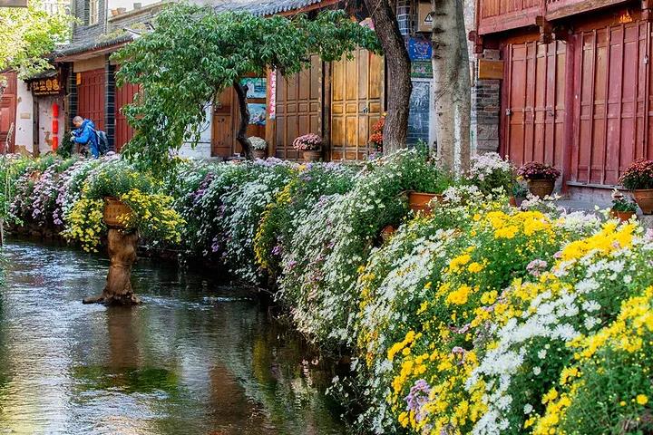 麗江古城內絢麗的秋菊,很好地詮釋了這句詩。
