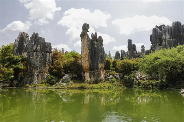 在石林風景區內,有一處碧波粼粼的湖水,湖畔屹立著一座石峰,石峰的形狀酷似一位撒尼少女。每天都吸引著無數的游客前來觀賞、留影,這就是著名的“阿詩瑪石峰”。