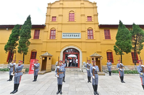 歲月變遷,暗淡了刀光劍影;列艦層樓,湮滅于歷史長河;鐵馬金戈,埋葬在青冢黃昏路。如今講武堂杏黃色的建筑在斑駁的陽光下熠熠生輝,恍惚間百年間的歷史在此刻重疊,一名名英勇的滇軍在操場上操練并高唱著講武堂的軍歌:“風潮滾滾,感覺那黃獅一夢醒;同胞四萬萬,互相奮起作長城;神州大陸奇男子,攜手去從軍。哪怕它歐風美雨來勢兇狠;練鐵肩,擔重擔,壯哉中國心!正當中!中華男兒,要憑那雙手撐蒼穹;睡獅昨天,醒獅今日,一夫振臂萬夫雄;長江大河,翹首昆侖風虎云龍;泱泱大國取多宏,黃帝之裔天驕子,紅日中國心!正當中!”他們所傳唱的意志在當今中國軍人的身上依舊可以體現,而作為后輩的我們也可以告慰先烈:幸不辱命!
