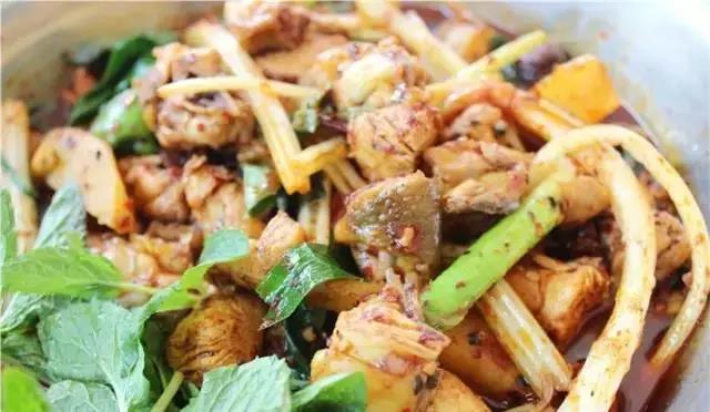 與許多地方將雞燜到肉軟不同,通關的黃燜雞更需要考驗食客的牙口。新鮮土雞經過炒制后稍微燜制,入味后即上桌,鮮香可口,回味悠長。